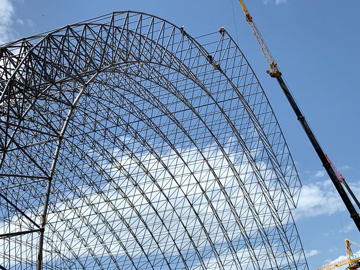 (2)网架加工前应对现场尺寸进行复测,确认无误后方可进行加工、安装;网架制作、运输、安装应遵守《空间网格结构技术规程》JGJ7-2010、《钢网架福安螺栓球节点》JG/T 10-2009、《钢网架福安螺栓球节点用高强度螺栓》 GB/T 16939-2016、《福安钢结构福安工程福安施工规范》 GB50755-2012、《福安钢结构福安工程福安施工质量验收标准》 GB50205-2020。
